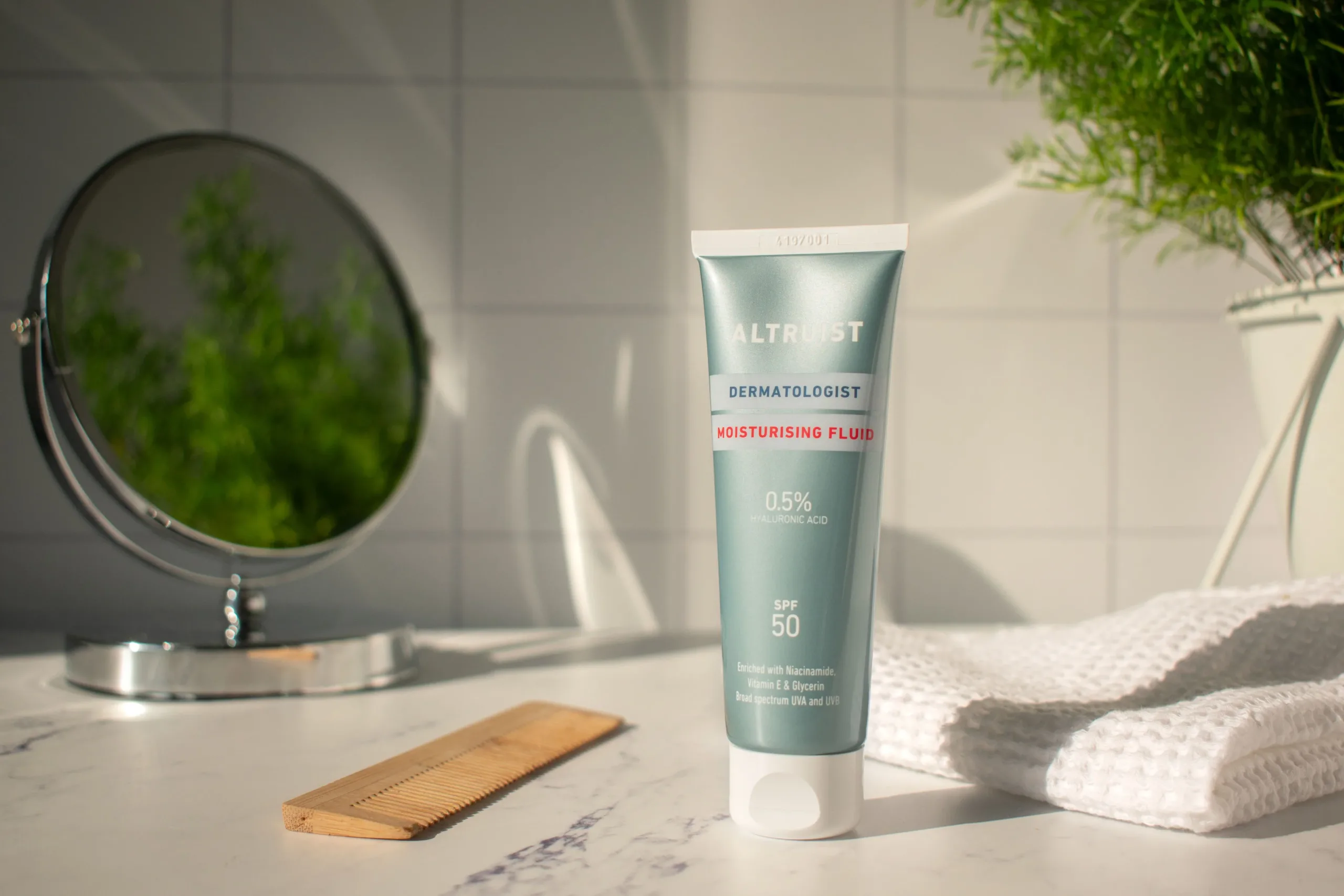 Αυτό το αντηλιακό με δείκτη προστασίας SPF50 (PPD 20) έχει σχεδιαστεί για να δημιουργεί πιο νεανικό, λαμπερό δέρμα χρησιμοποιώντας υαλουρονικό οξύ χαμηλού μοριακού βάρους, το οποίο διεισδύει βαθιά στην επιδερμίδα. Εμπλουτισμένη με γλυκερίνη για την ενίσχυση των φυσικών ενυδατικών παραγόντων της επιδερμίδας, η ελαφριά σύνθεση αποτελεί την τέλεια ενυδατική κρέμα προσώπου. αφήνοντάς το αναζωογονημένο και προστατευμένο από τις ακτίνες UVA και UVB. Χωρίς άρωμα και αιθέρια έλαια