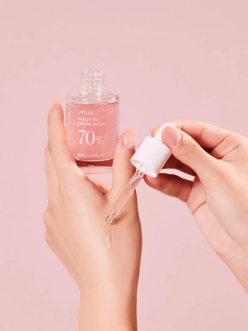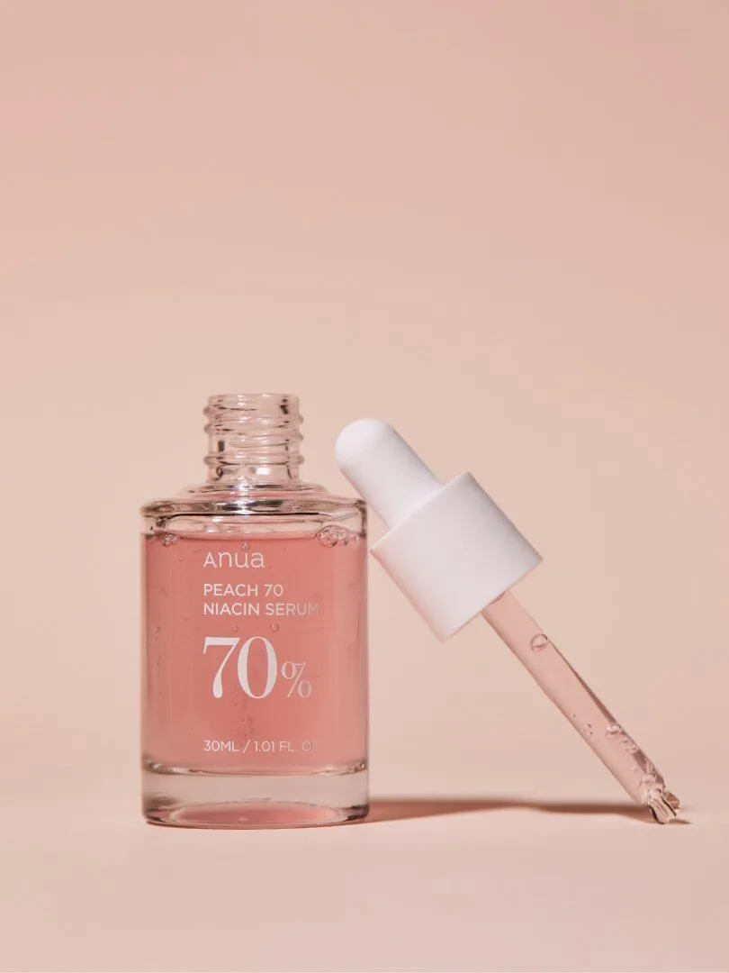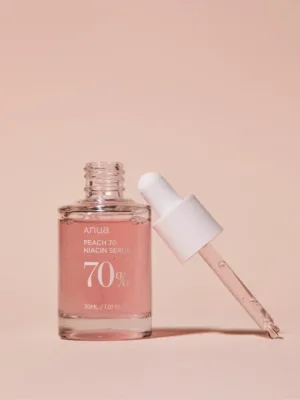 Το Anua Peach 70% Niacinamide Serum είναι ένας ορός προσώπου που προσφέρει glass skin αποτέλεσμα άμεσα και με διάρκεια. Βελτιώνει την υφή της επιδερμίδας, διορθώνει τον τόνο και αφήνει το δέρμα λαμπερό και φωτεινό. Περιέχει 5% νιασιναμίδη που φροντίζει και φωτίζει το θαμπό δέρμα σε συνδυασμό με το peach yogurt extract (εκχύλισμα ροδάκινου, σαλικυλική βεταΐνη) απομακρύνει τα νεκρά κύτταρα και εξομαλύνει την υφή της επιδερμίδας. Νιώθεις σαν να φοράς μάσκα από γιαούρτι και ροδάκινο.